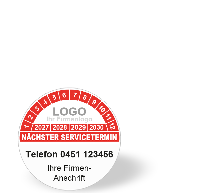 Mit Ihrem Firmeneindruck wird aus dem Prüfsiegel ein wirksamer Begleiter im Alltag Ihrer Kunden – Information und Werbung in einem.